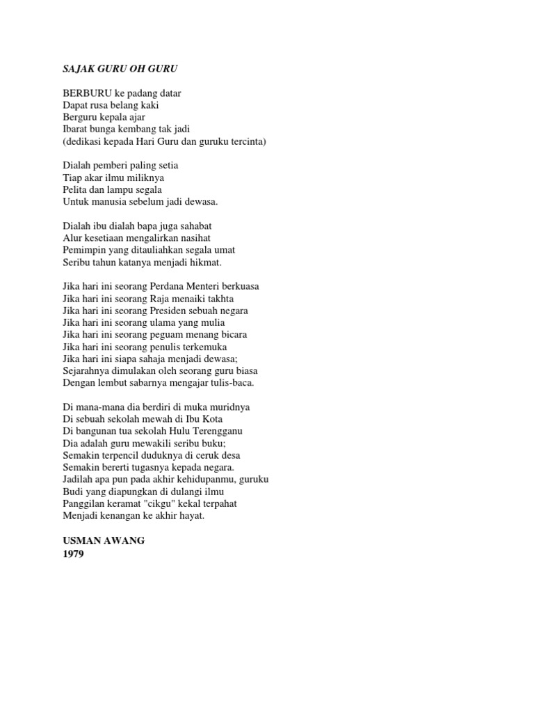 Sajak Hari Guru Usman Awang By Ra_Abbie254 02 Sep, 2022 Post a Comment Sajak Guru Oh Guru Pdf Sajak Guru Oh Guru See Misterpotato Id S Tweet On Twitter Twitter Puisi Usman Awang Guru Oh Guru Pdf Sajak Guru Oh Guru Usman Awang Youtube Share No comments for "Sajak Hari Guru Usman Awang"